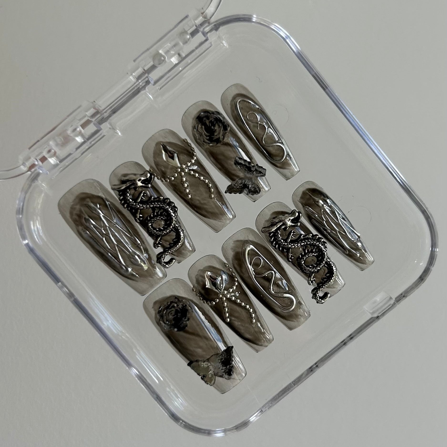 - Une boîte de rangement pour protéger vos ongles press-on